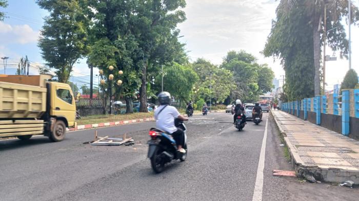 Ruang Manado – Kondisi Jalan Ahmad Yani di Kota Manado menuai keluhan dari warga. Jalan yang menjadi salah satu akses utama penghubung antarwilayah tersebut mengalami kerusakan cukup parah di beberapa titik. Selain itu, papan penanda peringatan yang dipasang sebelumnya diketahui sudah tidak berfungsi, sehingga membahayakan pengendara yang melintas.